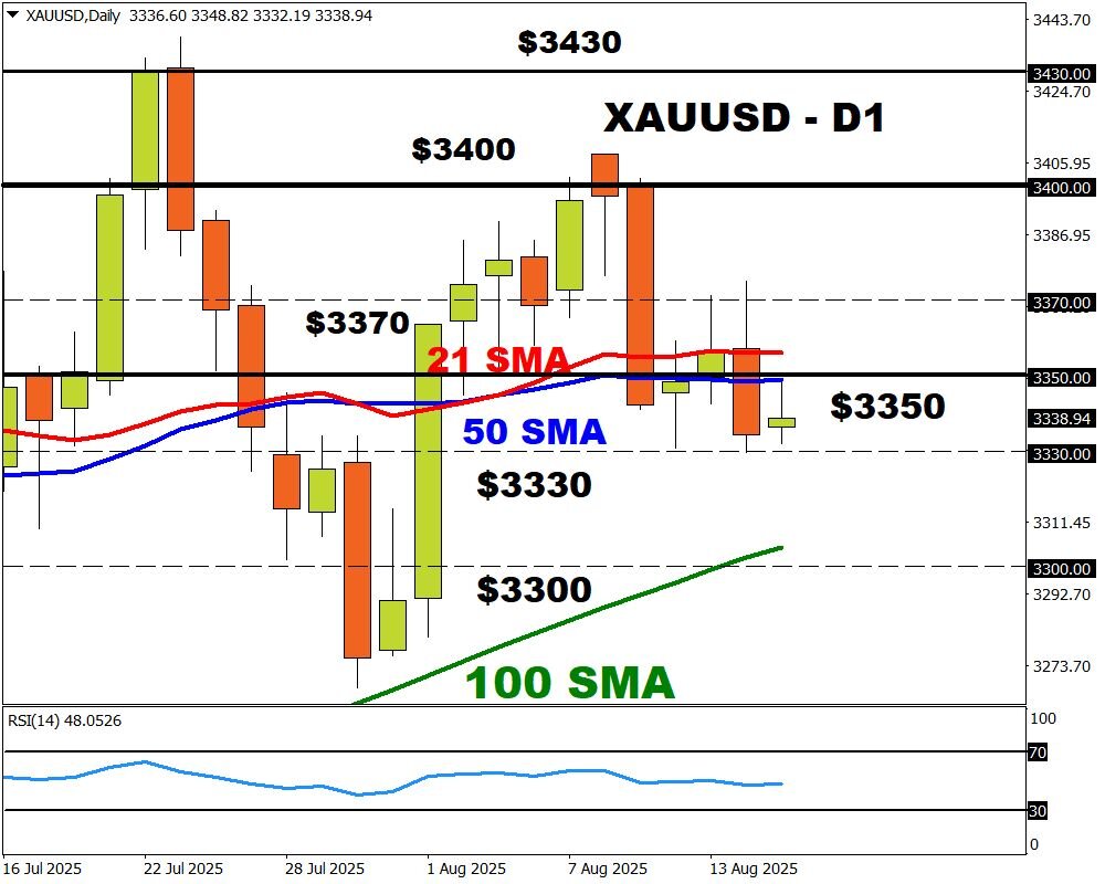 Looking at the week ahead, the annual Jackson Hole Economic Symposium and key US data may influence gold prices. The spotlight shines on Jerome Powell on Friday amid repeated comments from Trump to cut interest rates.